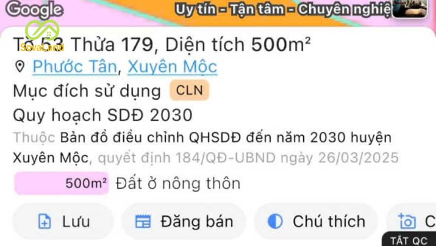 Đất Phước Tân – giáp Xuyên Mộc, vị trí gần bùng binh Đội 3, sát Quốc lộ 56B, đường 9 Tân Thành – Bình Châu. Diện tích 500m² (11m x 45m), bằng phẳng, rất thuận tiện để làm vườn, chăn nuôi hoặc nghỉ dưỡng.